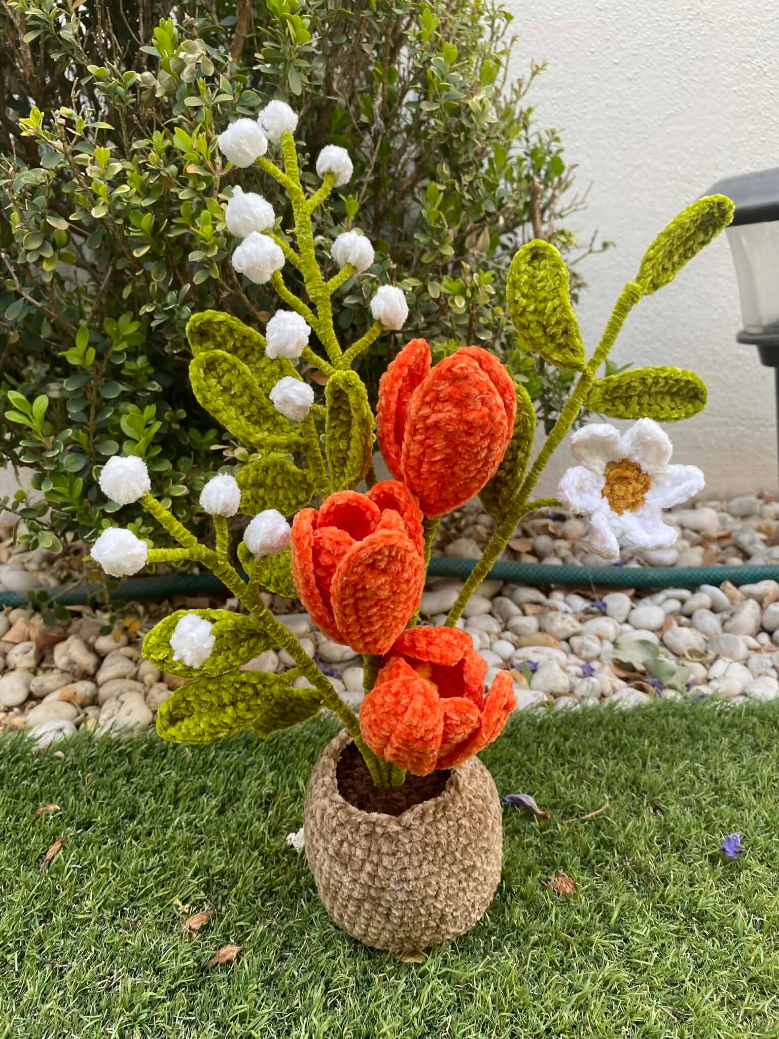 Tulipanes en una maceta tejida que le encantará a mamá, este si que es una completa obra de arte